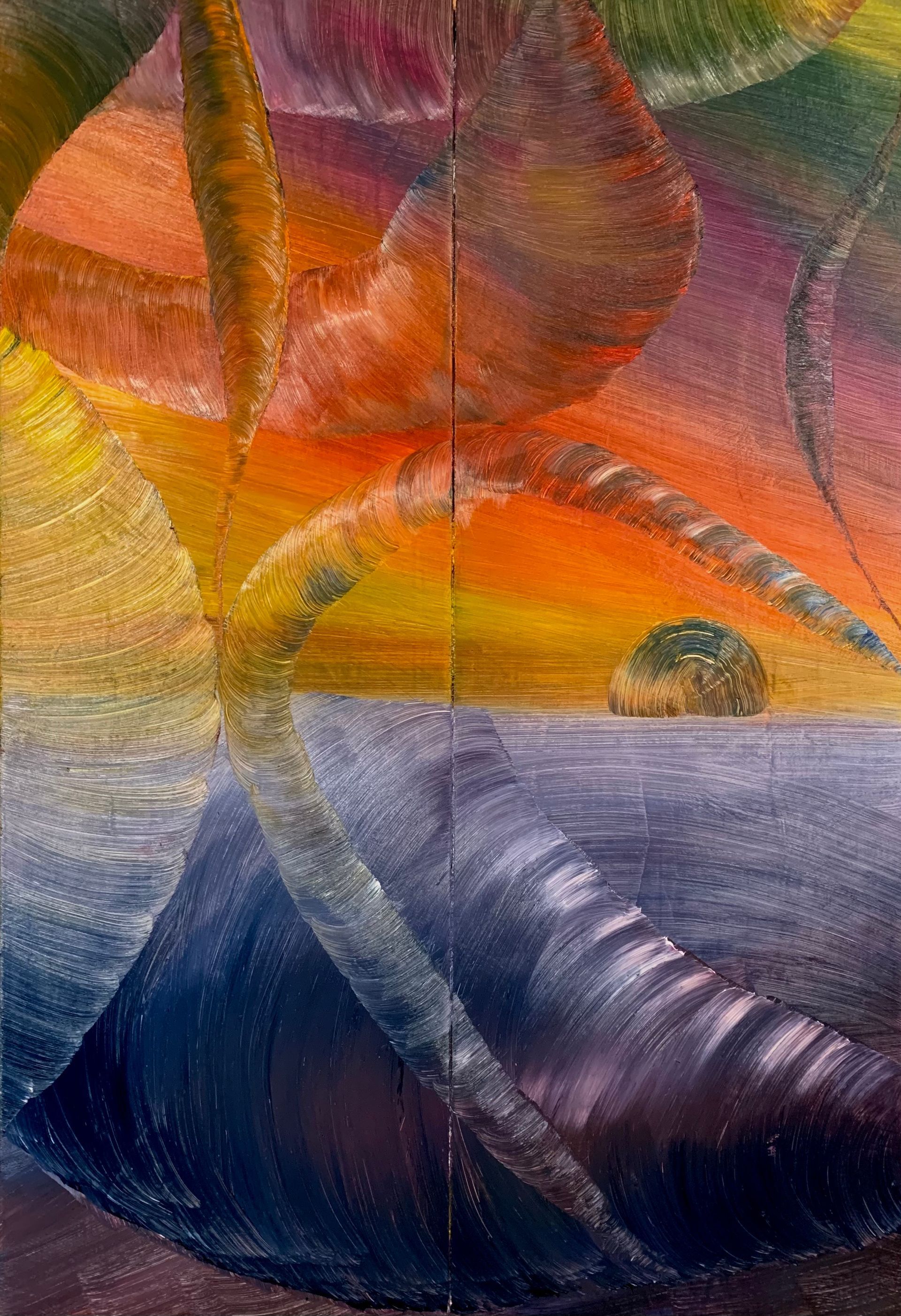 As of 2023, he found a style, which he can call his own. Besides painting, he is also building garden sculptures, wind sculputers and builds several artefacts out of discarded steel and iron objects which are presented under the header " More" on this website.